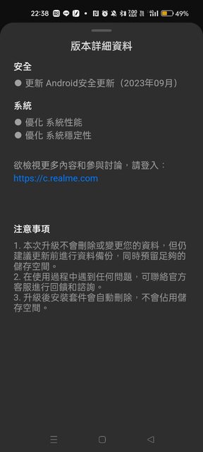 只見這次版本的更新只提到安卓安全更新(2023九月)ˋ優化系統性能ˋ優化系統穩定性,