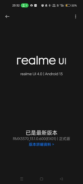 這次的GT eno2的更新版本號碼是RMX337_13.1.0.600(EX01)正式版,這次的容量也略大,