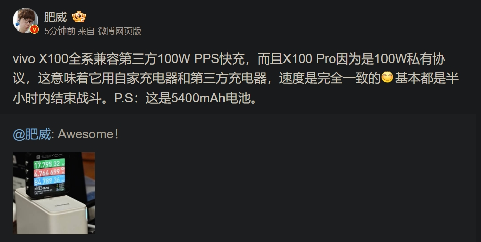 vivo韓伯嘯 https://m.weibo.cn/detail/4967611471235828 這幾天各位可能會看到一些續航評測,結果不錯,特別pro甚至會讓人覺得有點吃驚 。不過要說的是上市量產機會更好更誇張,標準版用著放心,而pro這代的續航口碑 絕對會爆棚。因為這週一些不同地區不同網絡的特殊問題都在解除(概率低但落到個 人頭上對續航影響不小)。我親手點的單子,所以,信我。 暖心財迷語錄:啥時候能全年對標蘋果的視頻能力……別單對比拍照 vivo韓伯嘯:這次試試,反正提升挺大的 vivo韓伯嘯:我們會繼續加油的。不斷縮小差距 --------------------------------------------------------------------------- 經理對於這代長焦設計表示是訂製版 vivo韓伯嘯 https://m.weibo.cn/detail/4966845197583495 週末早,你那裡天氣好麼?有沒有想一起出去走走的人? https://i.imgur.com/sg7k0Xl.jpg
