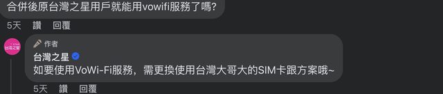 aalittle : 不過如果是原先台星sim卡就無法用vowifi的硬體限制 11/14 17:29