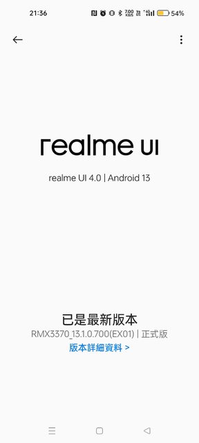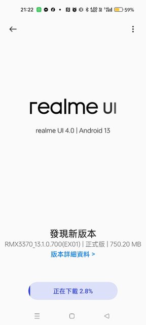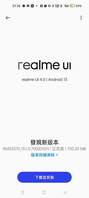 這次的版本號碼是RMX3370_13.1.0.700(EX01),容量大約七百多MB。