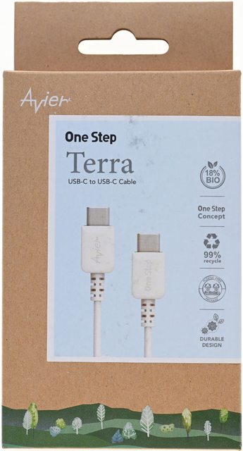 Avier One Step Terra USB-C to USB-C傳輸充電線(AVOTCC12WT)特色:
