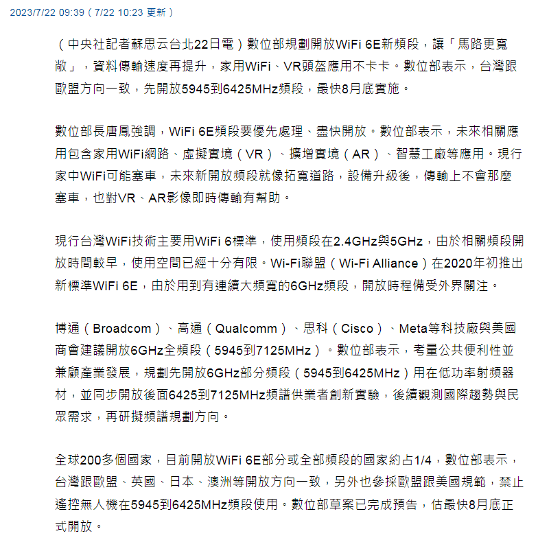 → kisia : 台灣去年開放的是6G頻段 不是wifi6 這個也錯太離譜 01/09 13:47