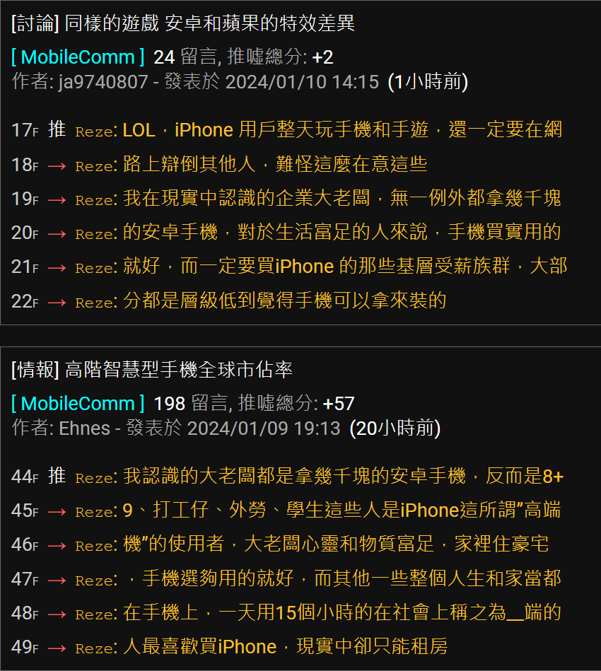 → Reze : 就好,而一定要買iPhone 的那些基層受薪族群,大部 01/10 14:41