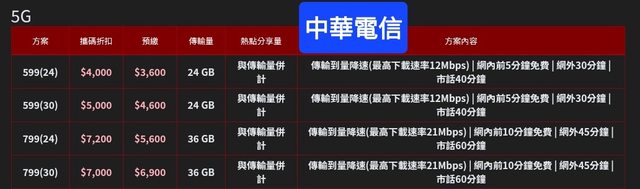 中華電信 4G不限速吃到飽 588