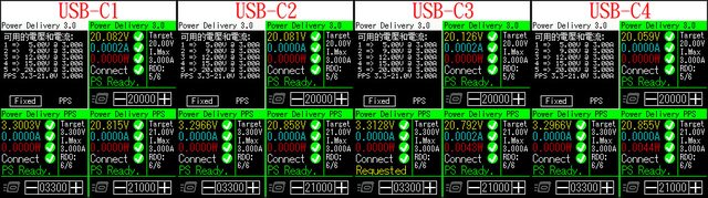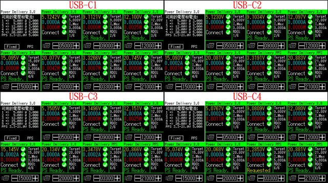 C1/C2/C3/C4輸出:5V/3A、9V/3A、12V/3A、15V/3A、20V/5A,PPS 3.3V-21V/5A,最大