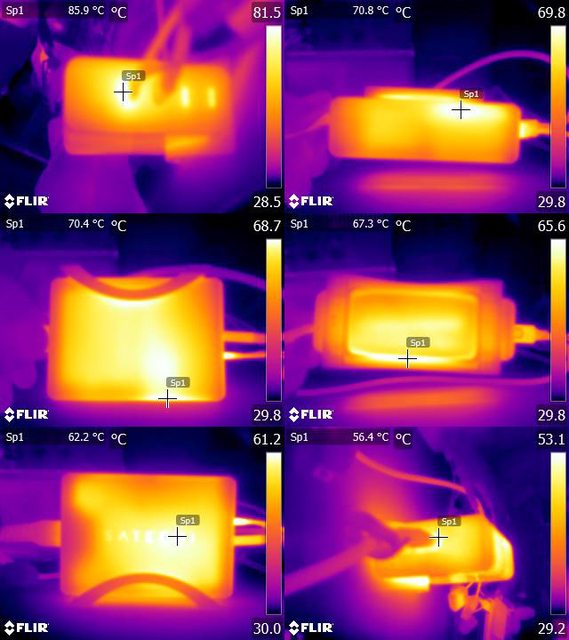 ▼USB-C1輸出100W,USB-C2輸出60W一小時後本體的紅外線熱影像圖