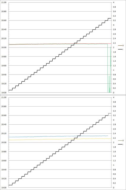 輸出電壓上升,輸出電流超過5.2A(C3)/5.3A(C2/C4)/5.4A(C1)截止