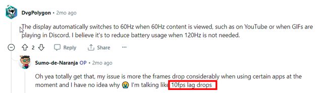 而且這種情況感覺不像是螢幕單純更新率切回60hz,而是大幅掉幀到10fps