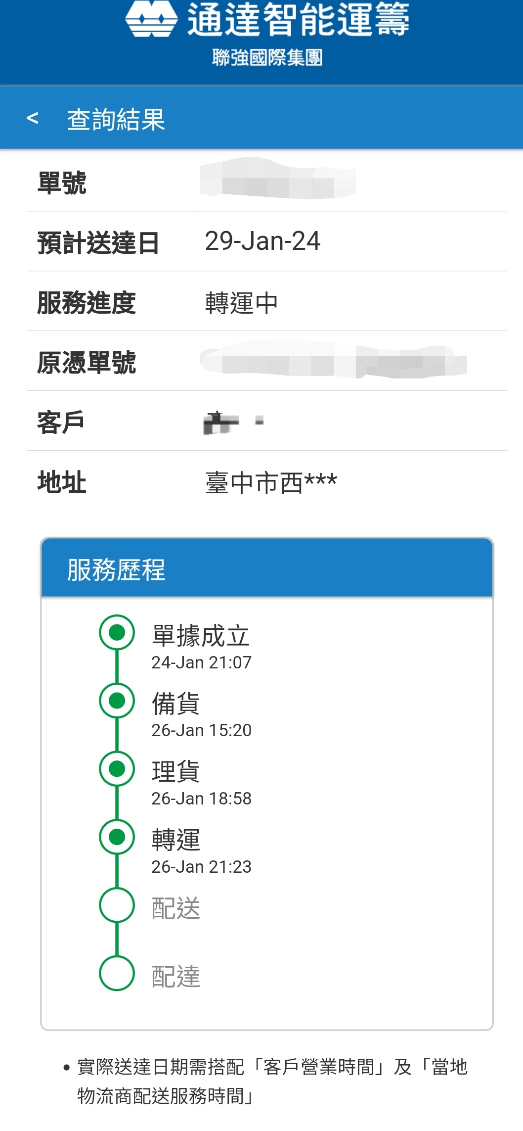 → mdk3500 : 我通達的進度顯示轉運中了QQ 01/26 21:31