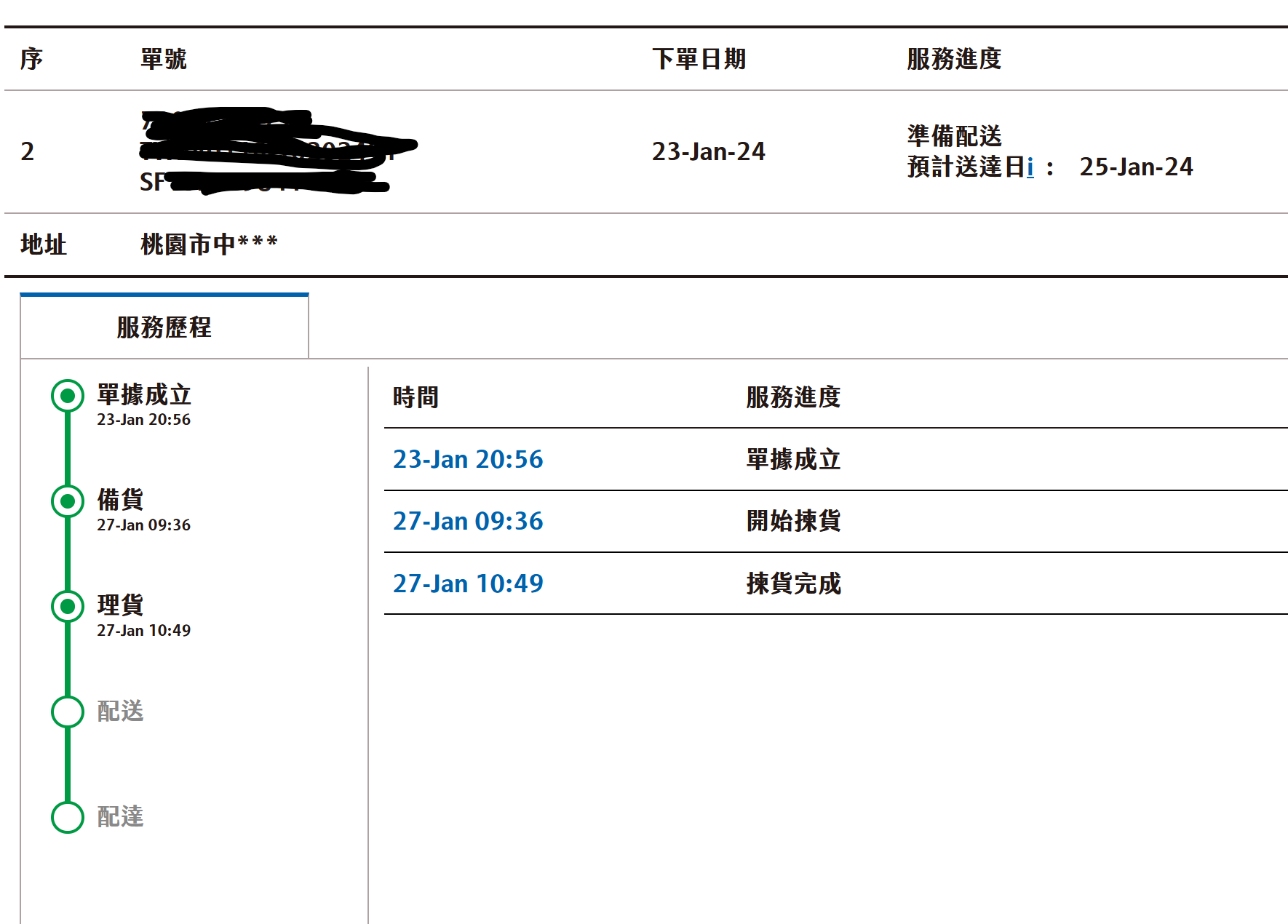→ ksng1092 : 我的預計配達日期還寫25日,厲害了XD 01/27 12:05