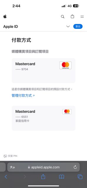 (甚至離開家庭方案之後,都還是無法刪除我哥的信用卡資料)
