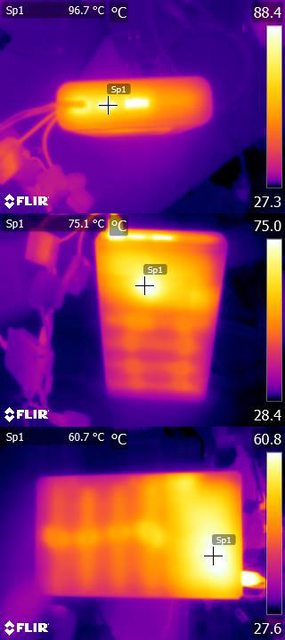 ▼20V/5A放電中觸發自動關機前的本體/連接埠紅外線熱影像