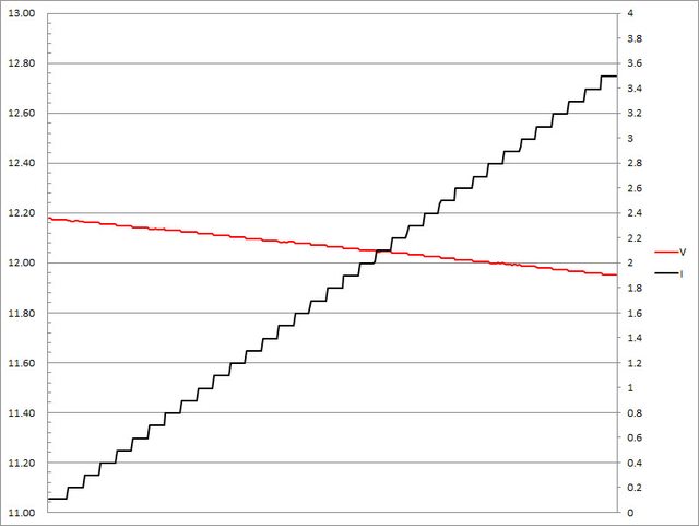 ▼5V/9V/12V/15V輸出1A/2A/3A放電的電壓電流圖表如下所示