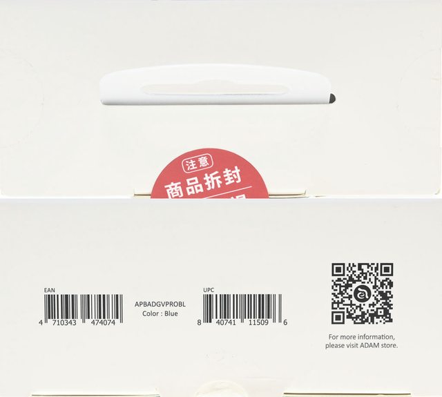 ▼外盒頂部有"注意,商品拆封,即不可退"貼紙,外盒底部有條碼、顏色標示、網路商店