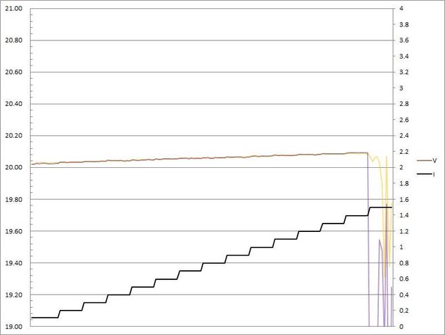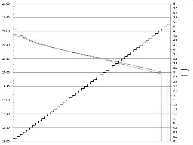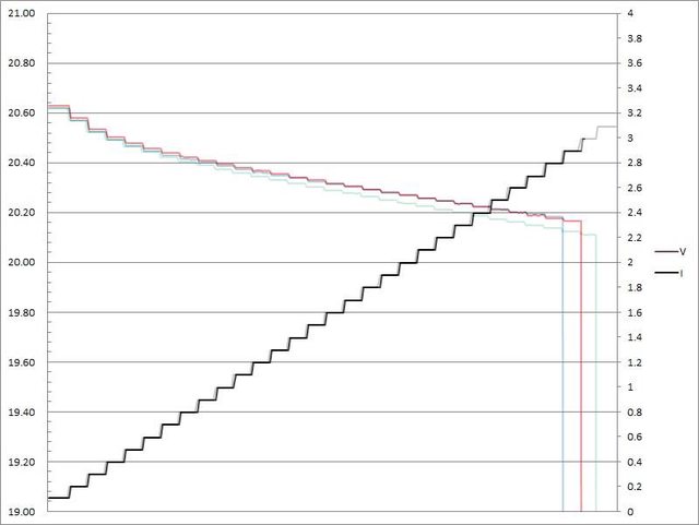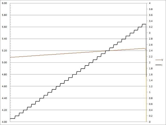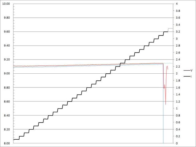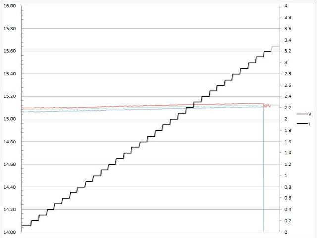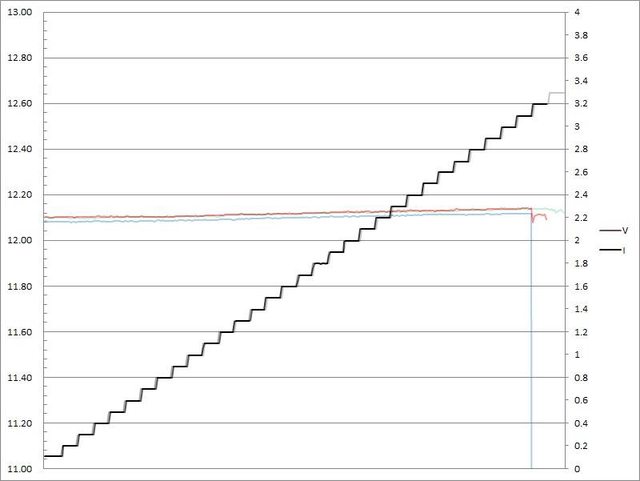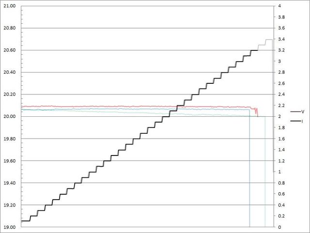 電流超過3.1A大幅壓降,超過3.2A截止