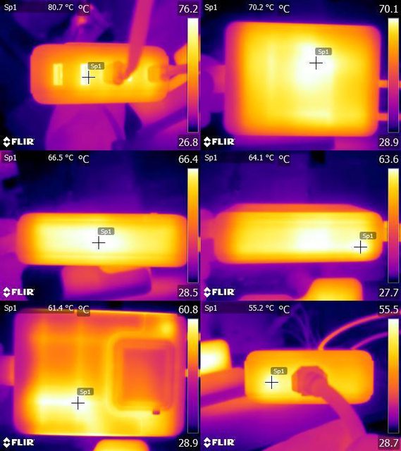 ▼USB-C1及USB-C3二埠總輸出功率198.88W一小時後本體/連接埠的紅外線熱影像圖