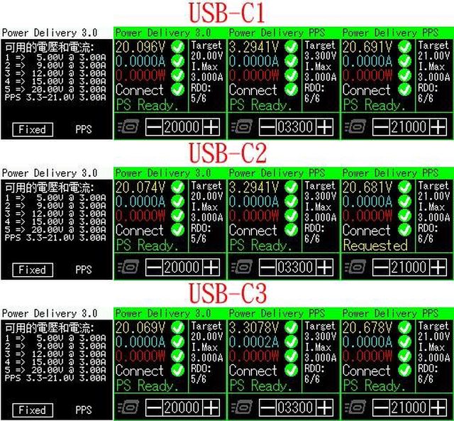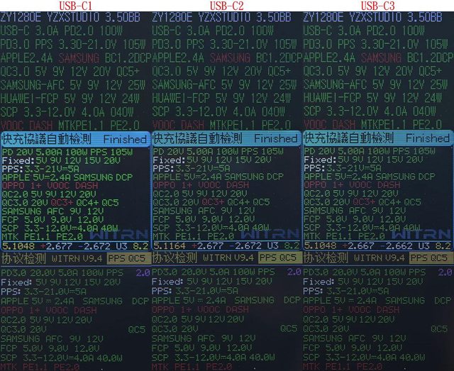 充電器C1/C2/C3輸出:5V/3A、9V/3A、12V/3A、15V/3A、20V/5A,PPS 3.3V-21V/5A,最