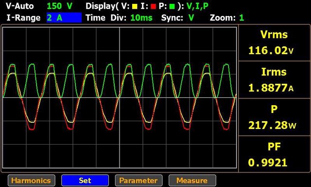 此時功率因數0.9921,整體轉換效率91.5%