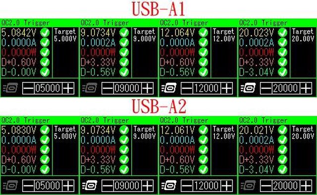 ▼A1/A2的5V/9V/12V/20V空載輸出電壓