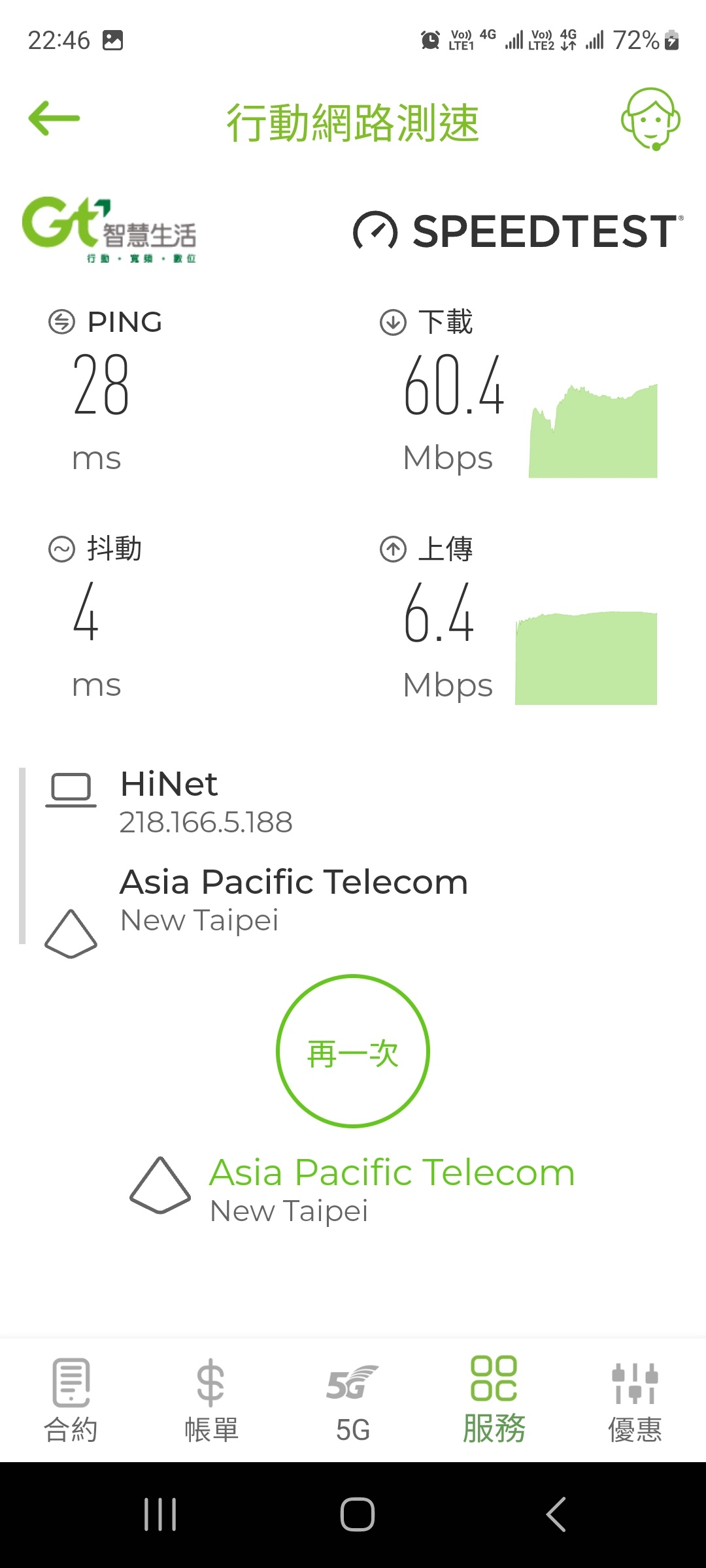 → denniscool : 亞太299用戶,我家原本亞太只有10M以下,現在都有40M 02/26 14:49