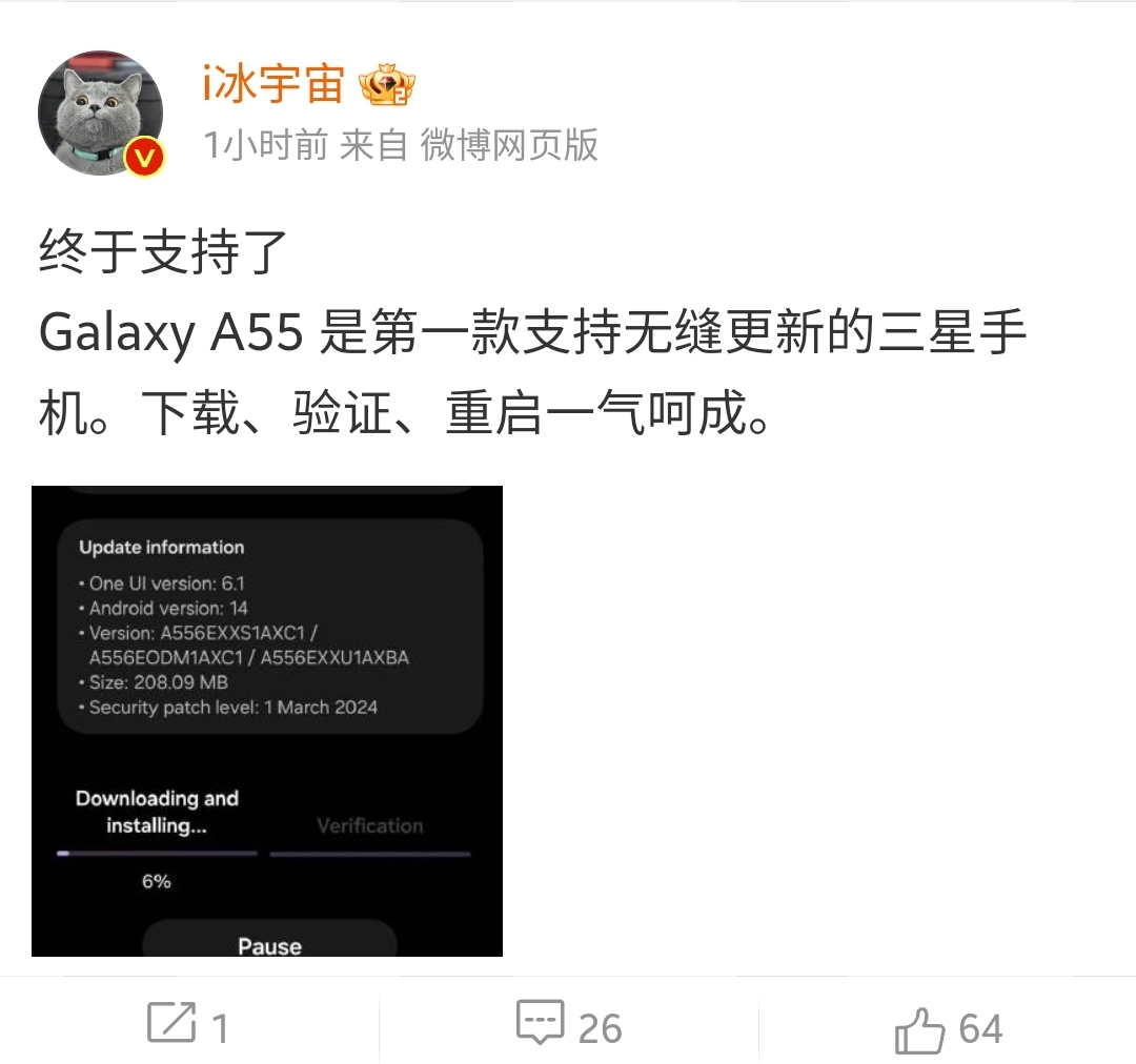 推 p40403 : i冰宇宙有貼A55出廠6.1,有新的更新模式了 03/22 20:01