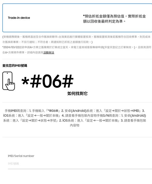 : 我想用小米手環6舊換新,問了客服說要打s/n碼,但是打了以後都沒辦法按下一步