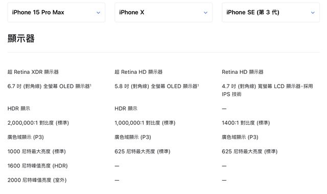 而其他沒有「超」字也沒有 XDR 的螢幕,