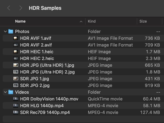 對了,除了 HDR 照片格式,我也順便測試了兩大類 HDR 影片的支援狀況,