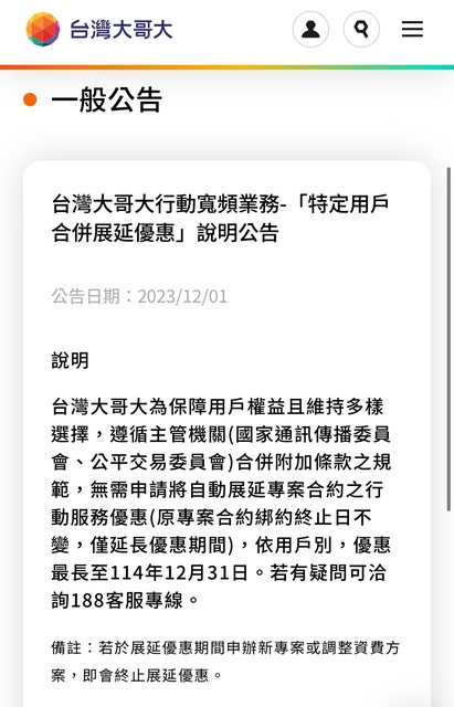 「特定用戶合併展延優惠」,