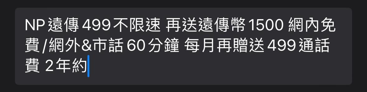 → ransan : 沒電銷:遠傳499 21M 有電銷:遠傳499不限速05/08 14:27