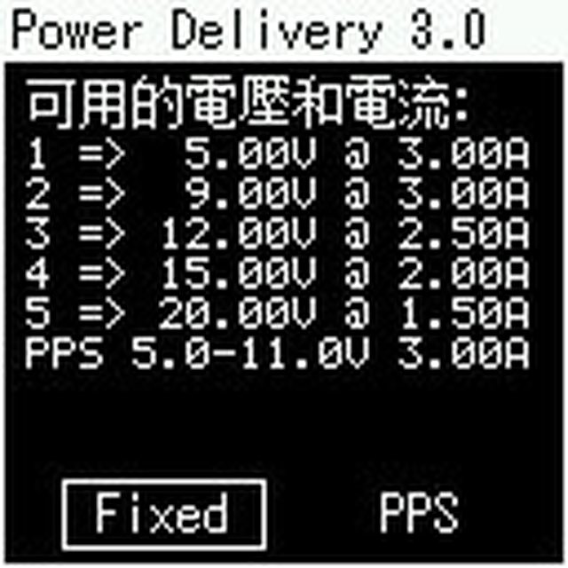 式下固定檔提供5V/3A、9V/3A、12V/3A、15V/3A、20V/2.25A,PPS檔提供5V-11V/3A