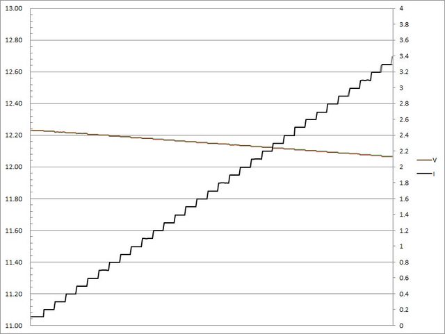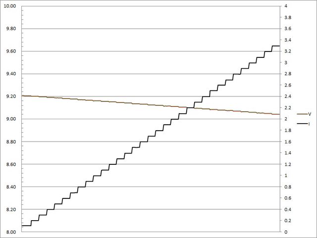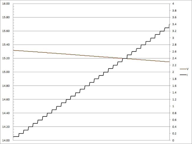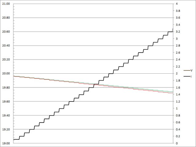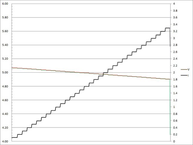 輸出電流超過3.2A大幅壓降,超過3.3A截止
