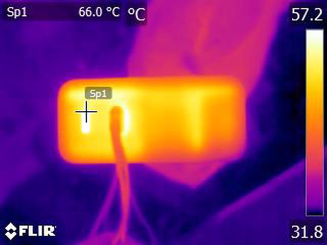 ▼單埠輸出100W一小時後充電器本體的紅外線熱影像圖