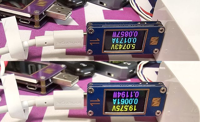 ▼C1搭配Innergie USB-C to Tip Cable,插上時一開始會輸出5V,過幾秒後才會觸發20V