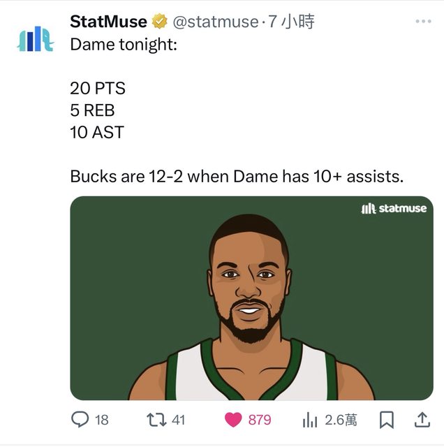 公鹿二哥Lillard 20分-10助攻的表現,也是公鹿本場球賽贏球不可忽視的功臣之一,