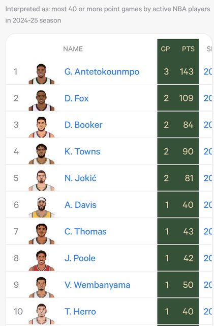 Most 40 or more point games by active NBA players in 2024-25 season