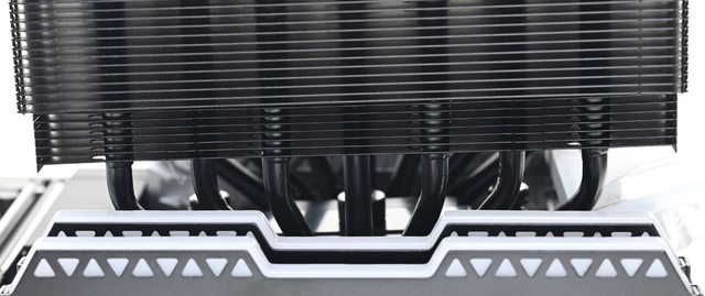 ●全銅處理器接觸面,7支直徑6mm熱導管,搭配56層鰭片,頂部配置裝飾蓋