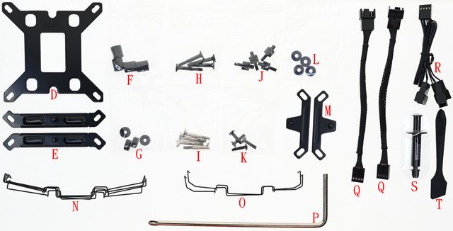 120mm風扇固定線扣(O)、長柄十字起子(P)、風扇降速線(Q)、風扇分接線(R)、暴力熊散