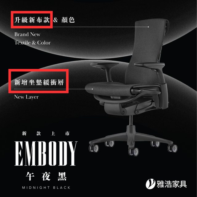 EMBODY的新款升級了新布款、顏色以及新增坐墊緩衝層