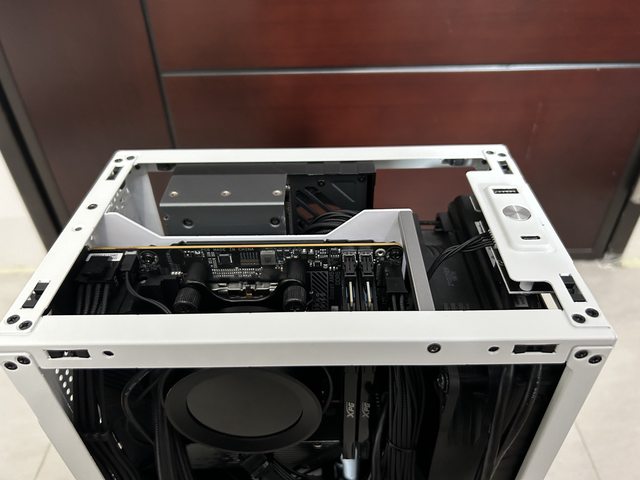 頂部可以看到4090風冷最短卡裝上去只剩一咪咪縫隙(卡長33.1cm,美味網版規格最長
