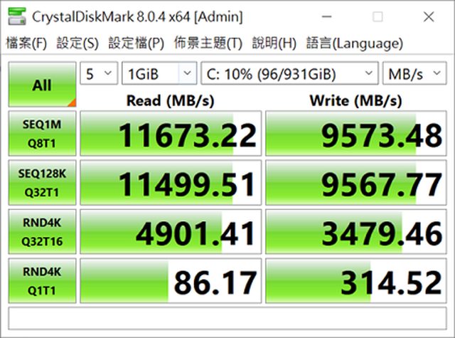 讀寫相當快速 SEQ1M 循序達11673MB/s 寫入9573MB/s