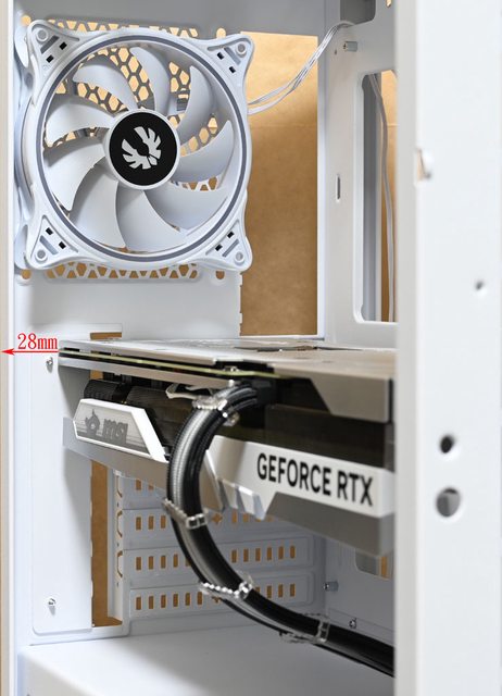 ▼安裝MSI GEFORCE RTX 4070Ti GAMING X TRIO WHITE(337×140×62mm)時,顯示卡前端