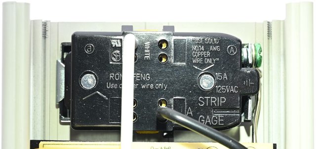 ▼6個NEMA 5-15R 3P美式插座均可透過開關控制,插座內部導體顏色如下圖所示