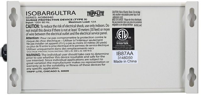 TRIPP-LITE isobar 6 Ultra六插座防突波濾波延長線內部組件包含了金屬氧化物壓敏電