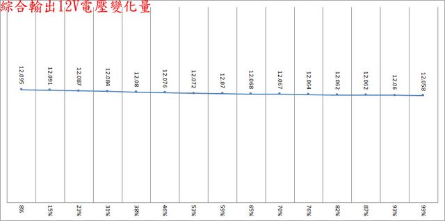 12V/2A時有最小12V漣波。於綜合全負載輸出下12V/5V/3.3V各路低頻漣波分別為