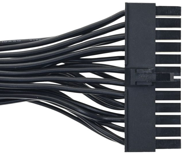 ▼1條主機板電源黑色帶狀模組化線路,提供1個ATX 24P接頭,18AWG/22AWG線路長度60公