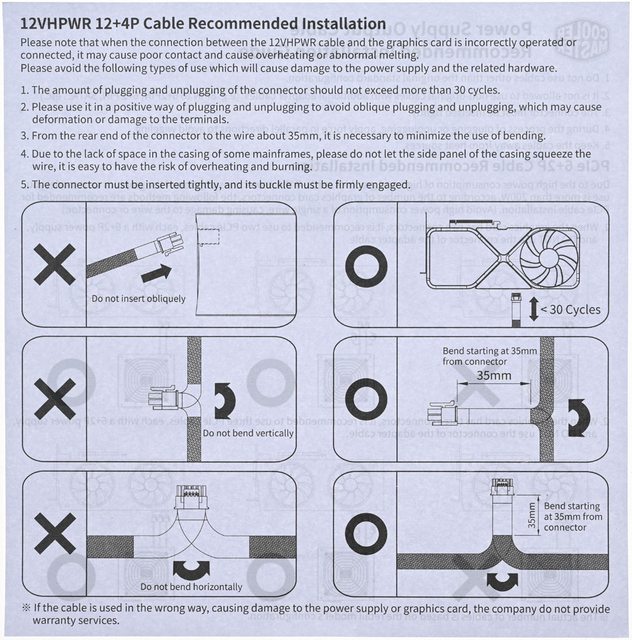 ▼電源輸出線組建議安裝方式說明書的背面有12VHPWR 12+4P建議連接方式