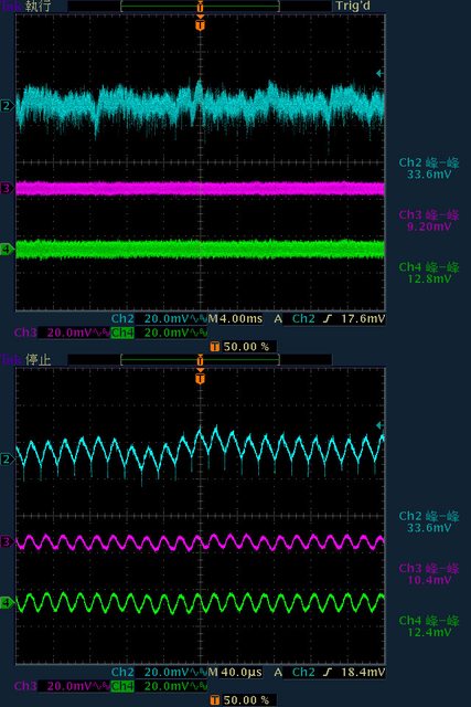 40mV/13.6mV/16.4mV,高頻漣波分別為30.4mV/12.4mV/16.4mV