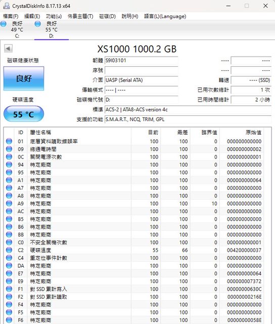 CrystalDiskInfo無法讀取壽命百分比/累積讀寫容量數據,CrystalDiskMark的SEQ1M